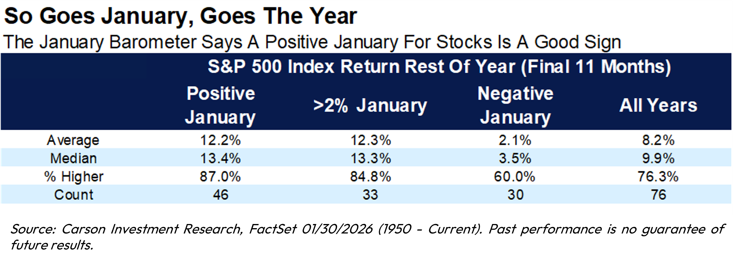 Investors are human. A strong January builds confidence, leading to a "fear of missing out" (FOMO) that has a history of sustaining buying pressure. A weak January creates a "wait and see" mentality that can starve the market of the “new capital” needed for a rally.